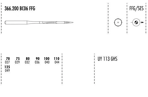 Groz-Beckert Needles, Size: 90/14, Point Style: FFG
