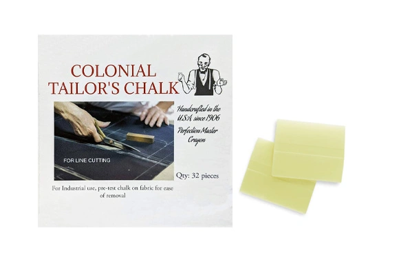 A blend of the finest grade paraffin and natural waxes, incorporating a specific fluorescent pigment. Excellent edge retention and milky white color in normal light. For accurate line cutting and face marking on multi-color or light colored fabric. Not recommended for fabrics of a weave or thickness which cannot absorb the wax after pressing. Grade AA brightness under black light. Piece size 1-7/16" x 1-3/4" x 3/16". Plain Finish. 32 pieces per box and 36 boxes per carton.