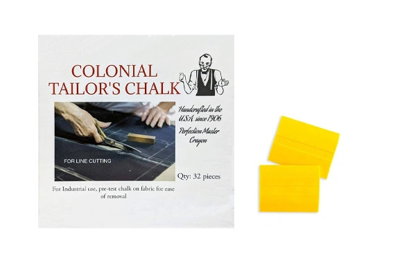 The distinctive larger size of this wax based crayon makes it particularly suitable for general use. However, its value is most apparent in the tailored suit industry where its size allows for constant sharpening to a slim profile. 1-3/4" x 1-1/2" x 7/32" plain finish. Packed 32 pieces per box and 36 boxes per carton.