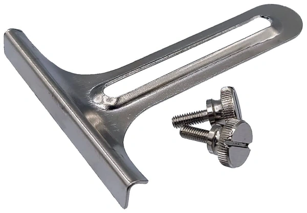 Precision Steel T-Gauge designed for industrial and domestic sewing machines. Ideal for accurate seam allowances, consistent stitching, and professional sewing results. 3" long x 2-1/2" wide. Fits all single needle drop feed lock stitch machines. Includes 2 thumb screws.